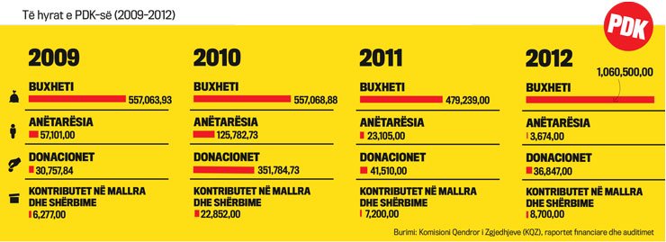 Gjatë viteve 2009-2012 PDK-ja ka marrë nga bizneset ose nga pronarët e tyre 333,460 mijë euro në formë donacioni, përderisa disa prej tyre kanë marrë tenderë në vlerë prej mbi 162 milionë euro.