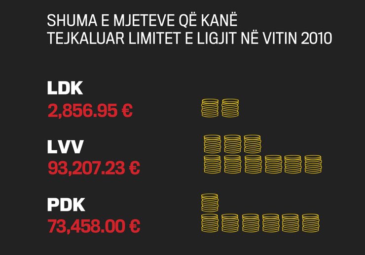 Në bazë të dokumenteve zyrtare e njëjta gjë nuk ka ndodhur me tri partitë e tjera, LDK-në, AKR-në, dhe AAK-në, edhe pse për një kohë të gjatë ishin në pushtet. Në këtë rrafsh, të dhënat tregojnë se sidomos financuesit e LDK-së kanë përfituar më së paku nga tenderët publikë. Rast konkret për këtë është Komuna e Prishtinës, e cila edhe pse prej pasluftës është udhëhequr nga LDK-ja, mbi 13 milionë euro nga tenderët publikë ua kishte dhënë financuesve të PDK-së. Të dhënat tregojnë se financuesit e LDK-së kanë marrë 419,631 euro nga tenderët publikë, ata të AAK- së 9,767,240 euro, përderisa ata të AKR-së 3,089,817 euro.