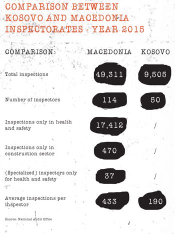 "An inspection per day per inspector is enough, but even this is difficult to achieve because there are many procedures to be followed prior to carrying out an inspection. Not only the private sector but also the public one takes much time, because there are many procedures. Public sector inspection takes much more time than private sector," says Ibrahimi.