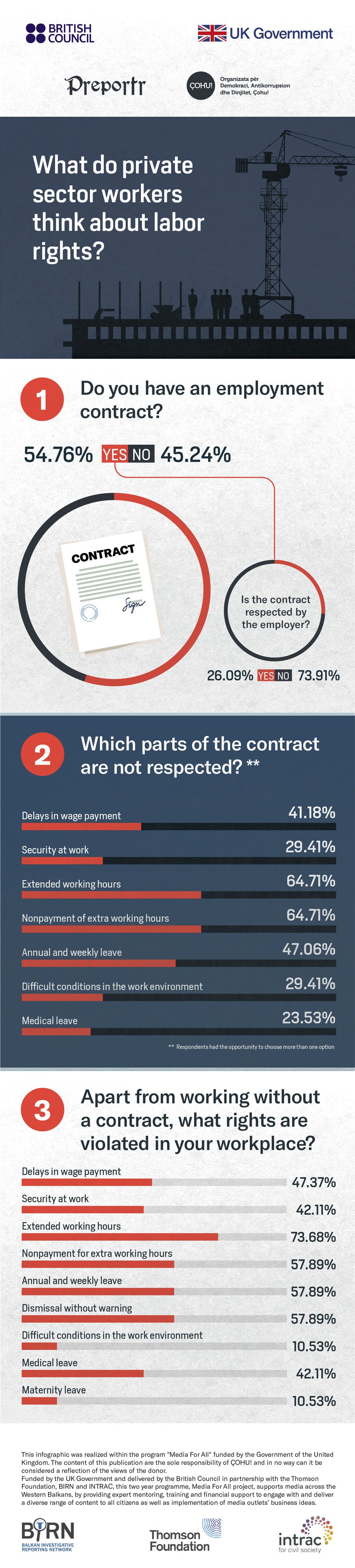 Even according to the questionnaire conducted by Preportr, only 55% of employees’ state that they have employment contracts, but 74% of them said that employment contracts are not respected by their employers.