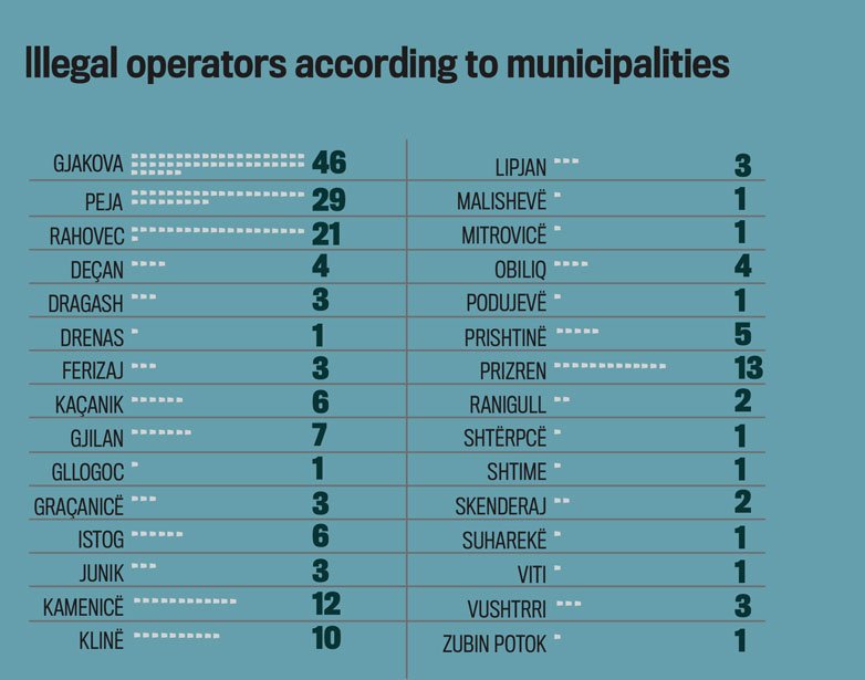 “As a punitive measure towards operators due to their failure to respect the decisions, they received a notice with minutes and some cases were initiated at the Basic Court. As a punitive measure, 34 operators were sent to this Court, and 16 cases were reviewed by the Court at Kosovo level. Also, after the decision no. 02/46, 21 machineries were confiscated with the assistance of KPMM and Kosovo Police”, says the report.
