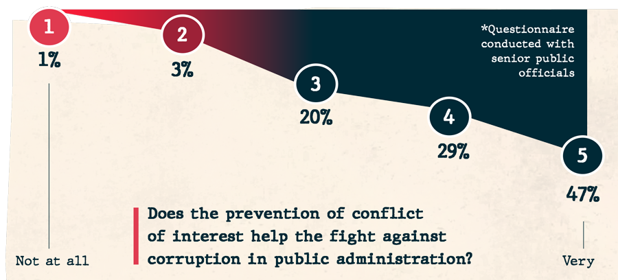 Of the officials who responded to the questionnaire, 47 percent of them think that preventing conflict of interest helps fight corruption in the public administration.