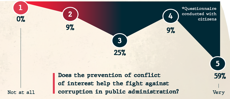 More than half of the citizens who responded to Preportr's questionnaire, think that the fight against corruption in the public administration is done through the prevention of conflict of interest.