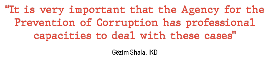 "In this sense, it is very important that first the Agency for the Prevention of Corruption has professional capacities for dealing with these cases, as well as within the institutions, the mechanisms aimed at preventing conflicts of interest are strengthened", he adds.
