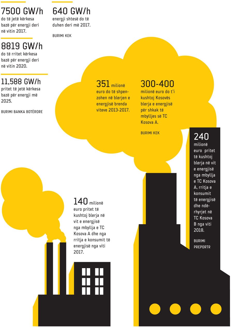 Në një anë, mbyllja e TC Kosova A dhe futja në riparim e TC Kosova B, të shoqëruara edhe me rritjen e kërkesës për energji, rrjedhimisht do të përcillen me sasi të larta të importit. Sipas informatave të ofruara nga zyrtarët e KEK-ut gjatë një takimi me ZRRE-në, parashihet që vetëm gjatë viteve 2013-2017, Kosova të shpenzojë diku mes 351 milionë euro në blerjen e energjisë për t’i plotësuar nevojat e brendshme.