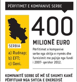 Në këtë horizont të rëndë parashikimi, përfituesit më të mëdhenj të kësaj situate do të jenë kompanitë serbe që eksportojnë energji në Kosovë.  “Preportr” ka nxjerr përfitimet e kompanive serbe nga KEK-u dhe ka parë që vetëm nga fundi i viti 2007 deri në qershor të 2012, kompanitë serbe kanë përfituar afër 400 milionë euro nga shitja e energjisë por edhe nga tenderë të furnizimit me pajisje. Kompanitë serbe që më së shumti kanë përfituar nga furnizimi me energji janë: “Rudnap”, “EFT” dhe “Geni”, si furnizuese me energji, dhe kompania “IMK 14 Oktobar”, në bashkëpunim me kompaninë “Eco Trade”, si furnizuese ku më 2008 dhe atë vetëm nga një tender i shitjes dhe instalimit të shiritave transportues, kishin përfituar mbi 49 milionë euro. Në këta shirita transportues ishin investuar miliona euro, por që vazhdimisht kishin dështuar  së funksionuari.