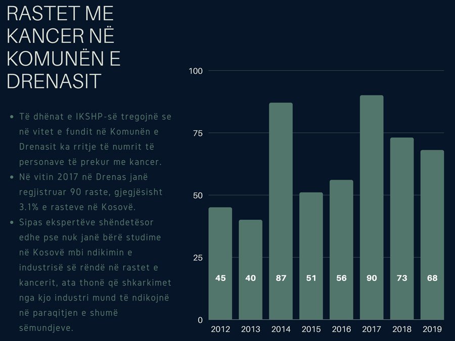Ndërkaq, të dhënat e Institutit Kombëtar të Shëndetit Publik tregojnë se në vitet e fundit në Komunën e Drenasit ka rritje të numrit të personave të prekur me kancer.