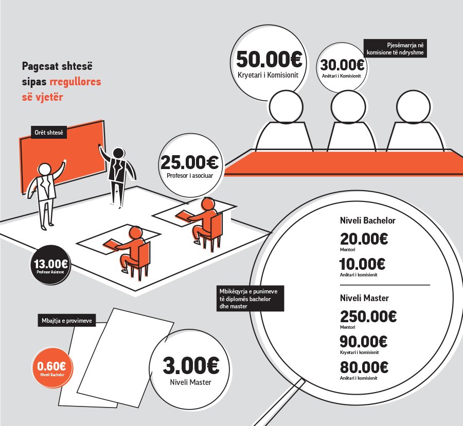 Marrë parasysh numrin e madh të studentëve që ka universiteti publik, të hyrat nga aktivitetet shtesë siç janë mbajtja e provimeve dhe mentorimi i temave të diplomës ua rrisnin profesorëve pagën shpesh për shuma të mëdha.
