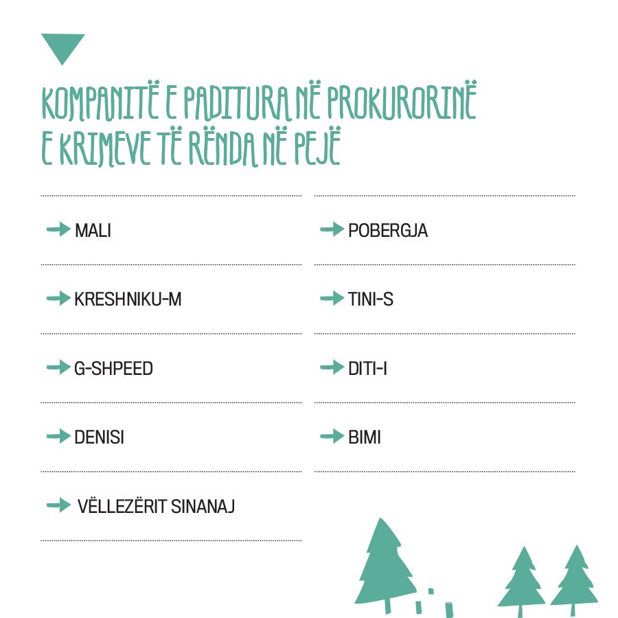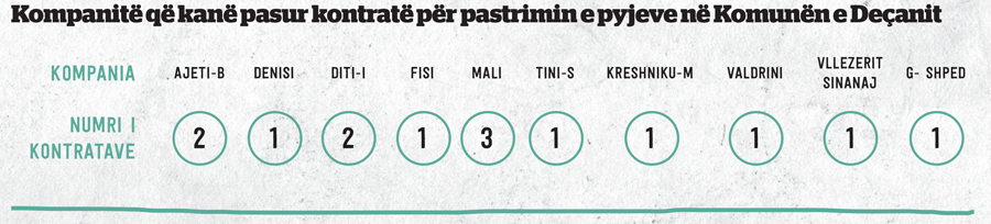 Preportr ka siguruar emrat e disa kompanive që kanë operuar në Komunën e Deçanit dhe Pejës gjatë viteve 2011-2012, të cilave u është shkëputur kontrata. Këto nëntë kompani janë paditur në Prokurorinë e Krimeve të Rënda në Pejë nga Njësiti i Krimeve Ekonomike. Këto lëndë aktualisht janë duke u trajtuar në gjykatë.