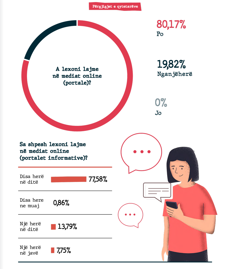Pyetësori për qytetarë u publikua nga mesi i muajit korrik të këtij viti, të cilit iu përgjigjen 121 respodentë. Nga përgjigjet e tyre rezulton se rreth 80 përqind e respondentëve lexojnë lajme disa herë në ditë në portalet informative të Kosovës. Rreth 65 për qind e respondentëve janë shprehur se portalet informative bëjnë shkelje të vazhdueshme të kodit të etikës, 17 për qind janë shprehur se portalet e respektojnë pjesërisht kodin e etikës, ndërsa rreth 4 përqind thonë se kodi i etikës respektohet plotësisht.