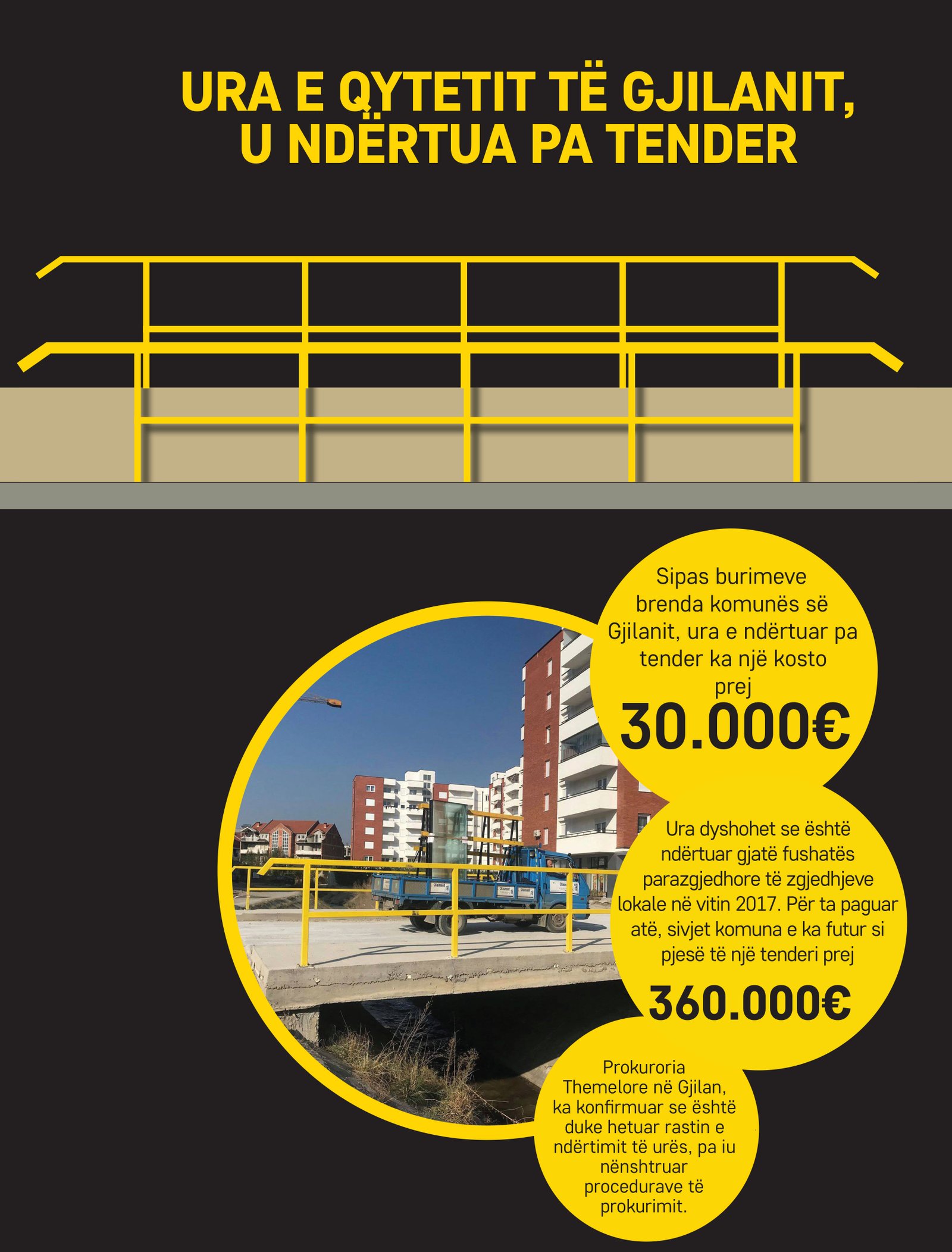 Për shkak të dyshimeve të ngritura se para më shumë se një viti, përkatësisht para zgjedhjeve të fundit lokale në Gjilan, është ndërtuar një urë në vlerë prej mbi 30 mijë euro pa kurrfarë tenderi, Prokuroria Themelore e Gjilanit ka nisur hetimet.